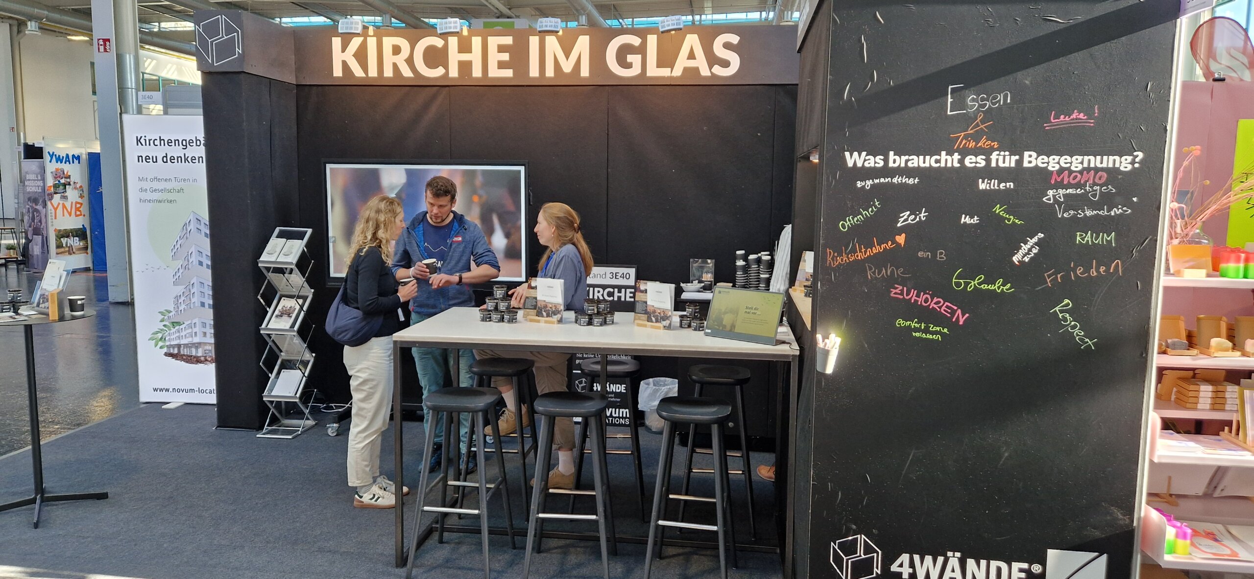 Als 4Wände waren wir mit unserem Stand und unserer Kampagne „Kirche im Glas“ mit dabei. Direkt neben der beliebten ZIMZUM-Lounge durften wir den Besuchern unsere Vision näherbringen.